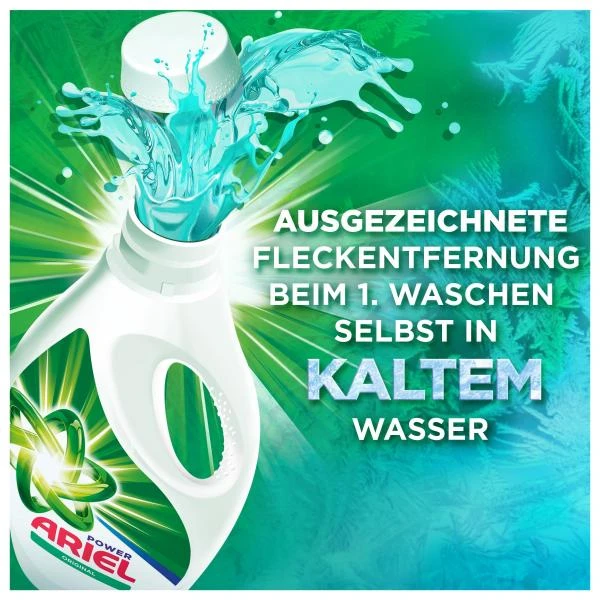 Ariel Flüssigwaschmittel bietet ausgezeichnete Fleckentfernung beim 1. Waschen selbst in kälteren Temperaturen.