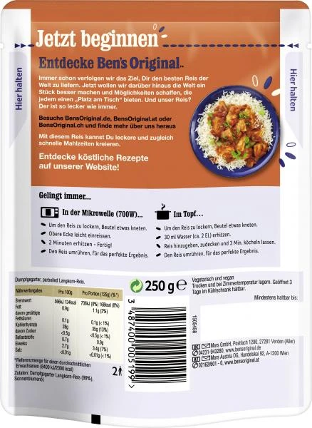 Artikelnummer: Y29TY 4502111135 Kategorien: Nudeln, Kartoffelprodukte & Reis, Reis, Reiszubereitung, Speisekammer Schlagwort: Ben's Original