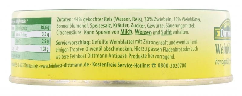 Schreibe die erste Rezension für „Feinkost Dittmann Weinblätter Mit Reis“ Antwort abbrechen