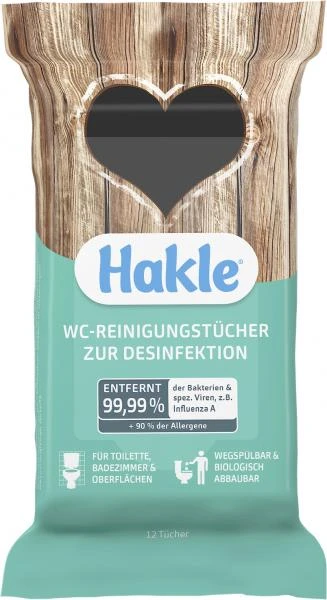 Hakle Hygienepapiere zur Desinfektion – Zuverlässige Hygiene für Toilette und BadezimmerDie feuchten WC-Reinigungstücher von Hakle reinigen und desinfizieren Toiletten und Oberflächen zuverlässig, wo immer Sie gerade sind.Sie entfernen 99,99 % der Bakterien und speziellen Viren, z.B. Influenza A (H1N1) sowie 90 % der Allergene (Graspollen, Hausstaubmilbenkot, Hunde- und Katzenallergene). Die Tücher können einfach im WC entsorgt werden, denn sie sind wegspül- und biologisch abbaubar. Sichere antibakterielle Wirksamkeit mit einem angenehm frischen Duft.