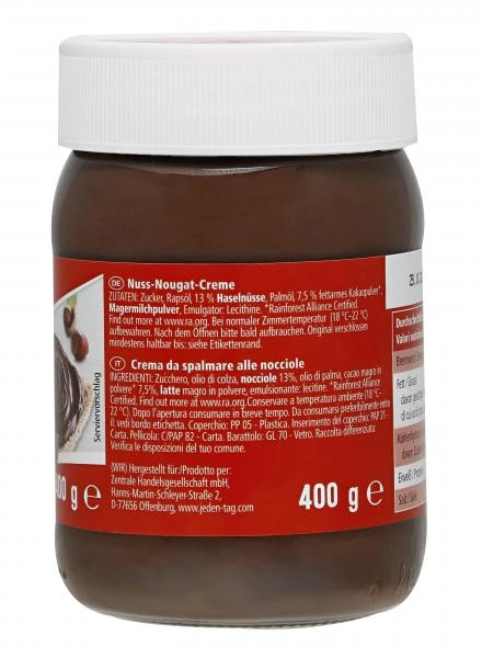 Nuss-Nougat-Creme mit 13% Haselnüssen.