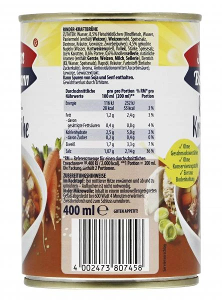 Artikelnummer: Y29TY 4502050439 Kategorien: Dosengerichte, Fertiggerichte & Konserven, Speisekammer, Suppen, Weitere Suppen Schlagwort: Sonnen Bassermann