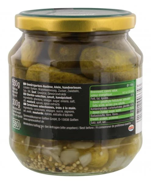Artikelnummer: Y29TY 4502040297 Kategorien: Eingelegte Gurken, Fertiggerichte & Konserven, Gurken ganz, Sauerkonserven, Speisekammer Schlagwort: Spreewaldhof